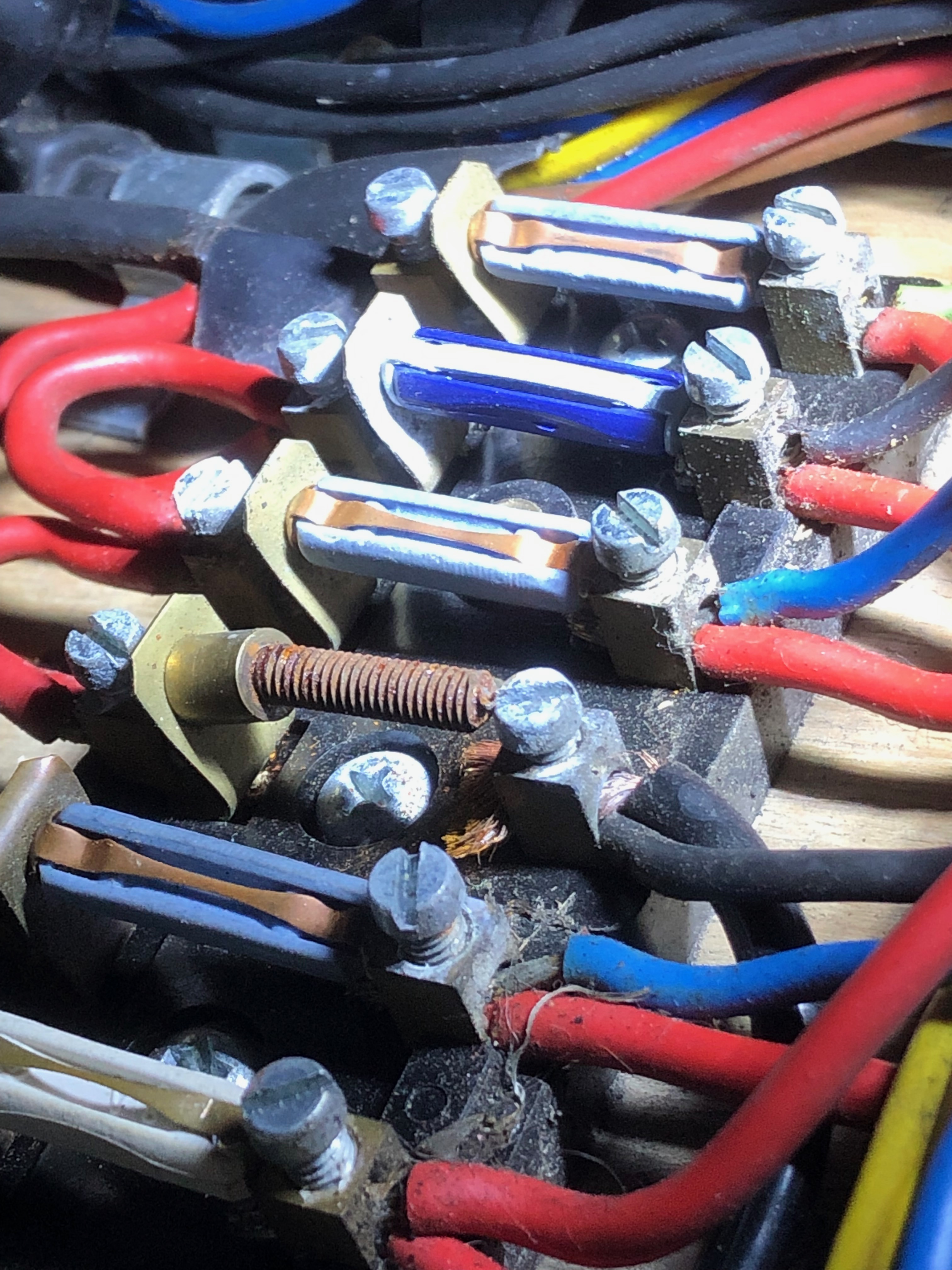 Die Elektrik wurde überprüft und einige Spezialschaltungen und Sicherungen entfernt. Unser Elektriker brachte ein neues Kabel am Suchscheinwerfer an und versiegelte den Stecker mit Schrumpfschlauch.