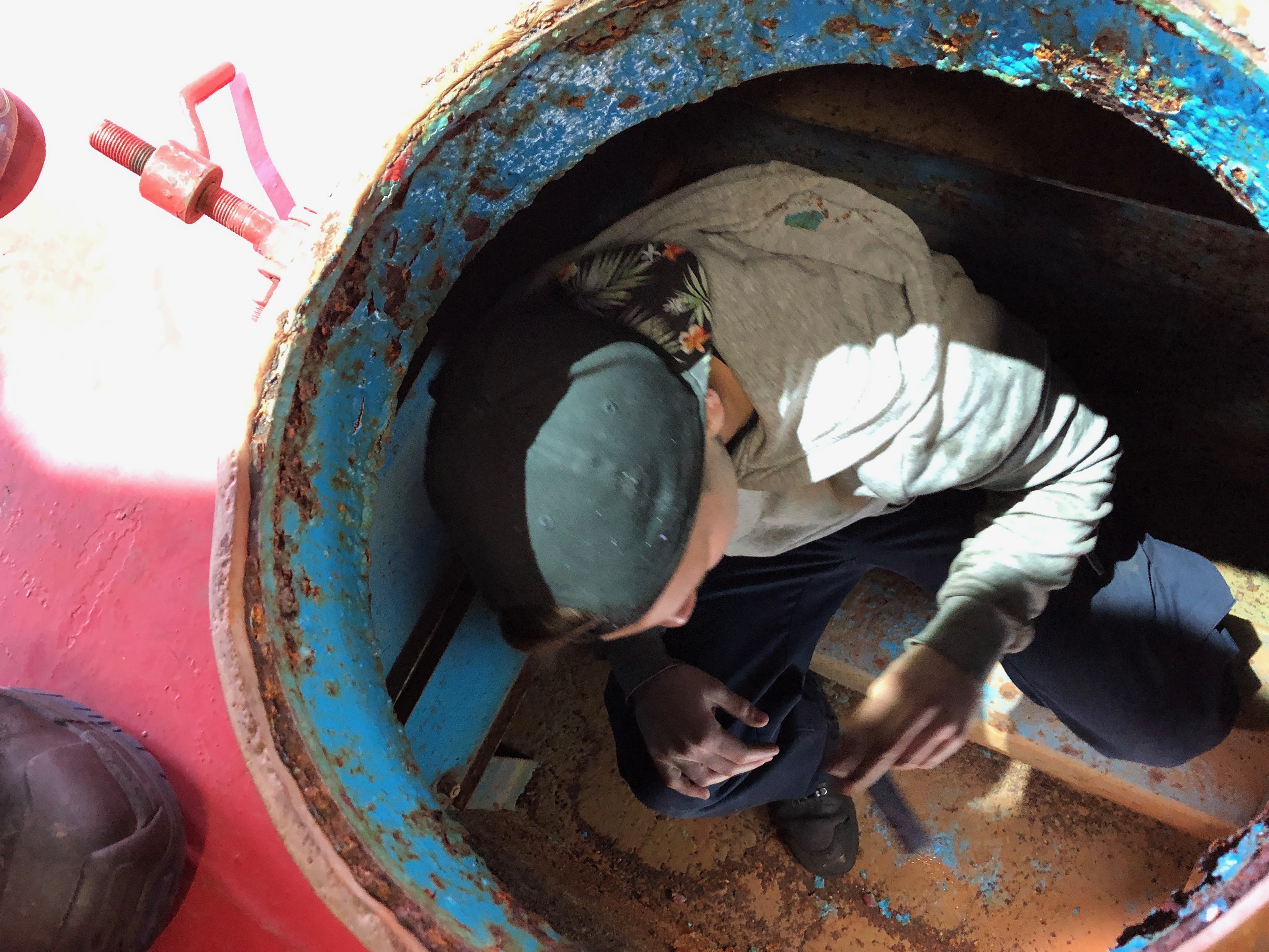 Auch der Wassertank wurde von innen begutachtet und die Arbeiten an diesem geplant.