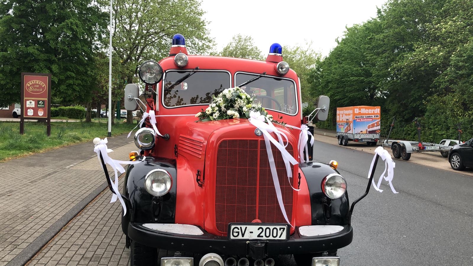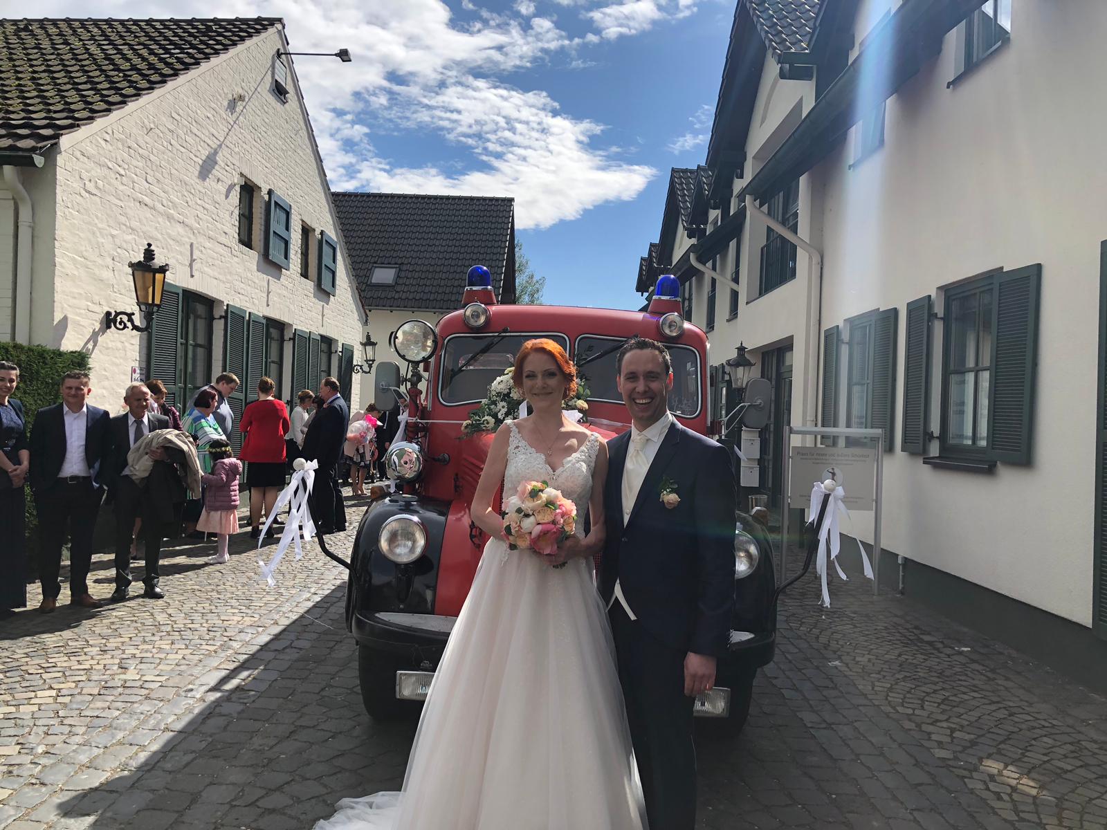 Kamerad Michael (Löschzug Hemmerden) und Anne gaben sich am 27.04.2019 das „JA“ Wort. Die TLF 15 Gruppe stellte pünktlich das Fahrzeug bereit. Vom Löschzug Hemmerden wurde das Fahrzeug mit Blumen und Schleifen geschmückt.